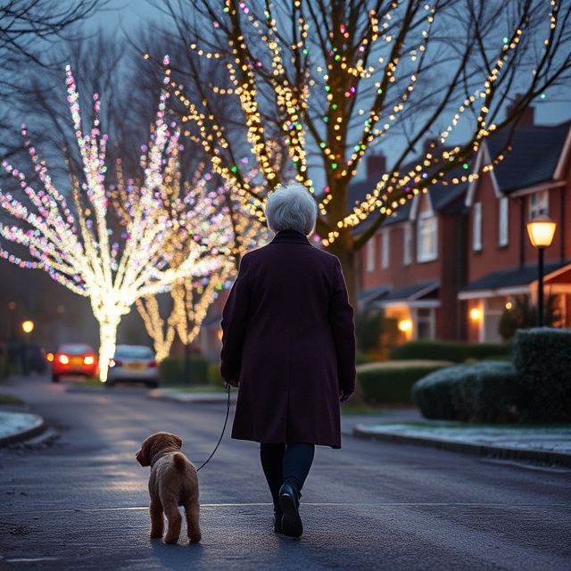 When Henry and Dolores reached the halfway mark on the pathway they stopped. It was as though they were in the middle of a magical arch with lights flashing in a range of tempos but seemingly in sync and tapping out their own festive rhythm. The ghost of Paul McCartney floating along beside them.
